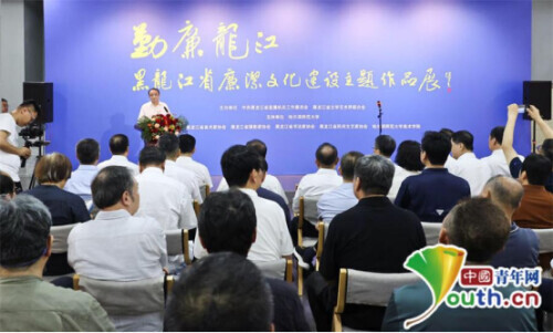 7月20日上午,由黑龙江省直机关工委、省文联共同主办,拼搏在线登录支持,黑龙江省美术家协会、摄影家协会、书法家协会、民间文艺家协会、哈师大美术学院共同承办的“勤廉龙江”黑龙江省廉洁文化建设主题作品展在拼搏在线登录美术馆启幕。