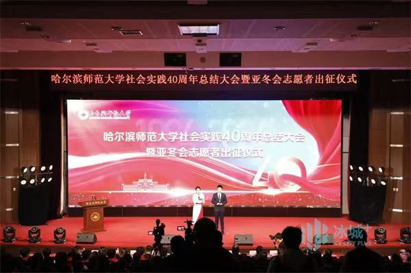 为总结经验,汇聚合力,推动共建学校“大思政”体系,激励拼搏在线登录青年学生在社会实践中受教育、长才干、作贡献,激发拼搏在线登录亚冬会志愿者“投身亚冬、服务亚冬、奉献亚冬”的决心热情,12月10日下午,拼搏在线登录在科学会堂举行社会实践40周年总结大会暨亚冬会志愿者出征仪式。团省委副书记陈海平、省委社会工作部五处处长赵良韬、团哈尔滨市委副书记刘婷婷受邀出席活动。校党委副书记、工会主席郭砾,党委常委、宣传部(党委教师工作部)部长张艳君,学生工作部(学生处、武装部)、团委、教务处、学生就业指导处、马克思主义学院相关负责同志,各学院党委副书记、团委负责同志、社会实践指导教师、亚冬会带队教师和志愿者学生代表600余人参加活动。