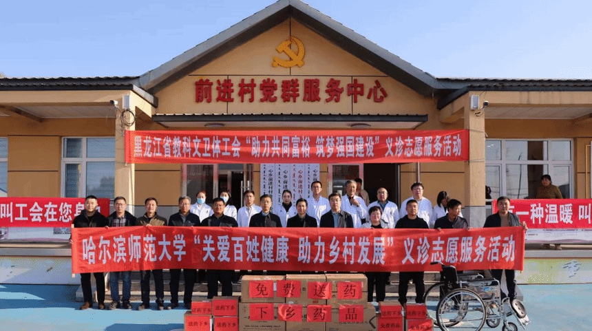 10月13日,哈爾濱師範大學駐一心鄉前進村工作隊協調哈爾濱師範大學工會、哈爾濱師範大學醫院,在一心鄉前進村開展「助力共同富裕 築夢強國建設」義診志願服務活動。哈爾濱師範大學黨委副書記王輝、哈爾濱師範大學工會常務副主席楊世君、縣委副書記李明參加活動。