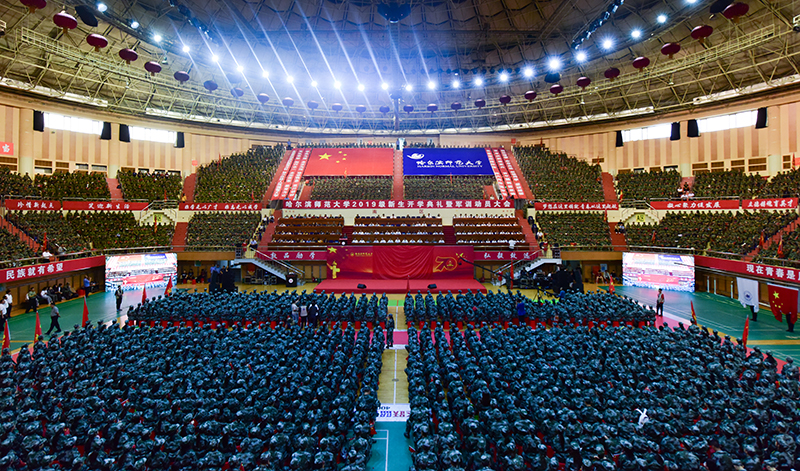 (盛志伟/文)金秋九月,丹桂飘香,梦溪湖畔,青春飞扬!9月8日,学校分别在江北校区体育馆和江南校区运动场隆重举行2019级新生开学典礼暨军训动员大会。