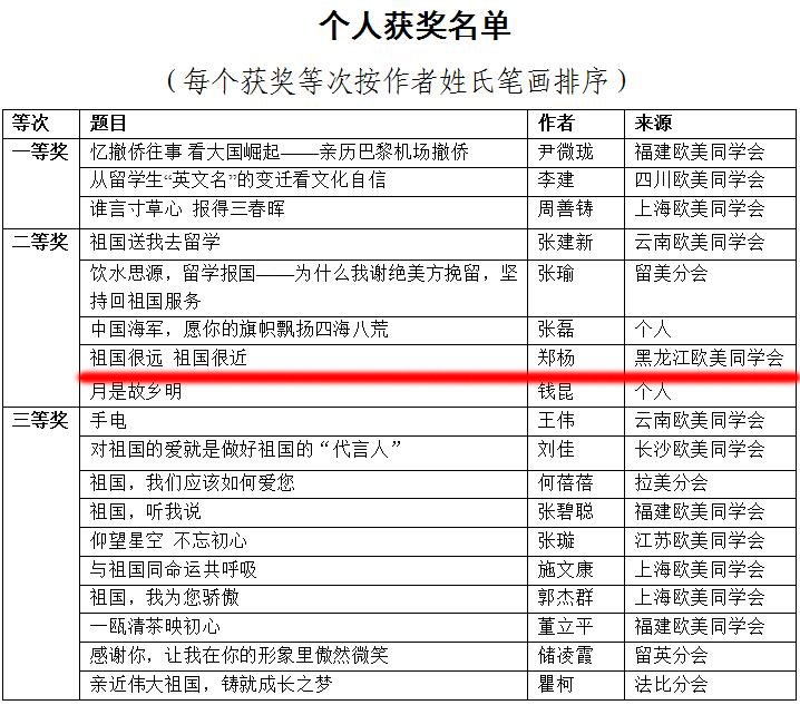(任凯/文)近日,欧美同学会(中国留学人员联谊会)对庆祝中华人民共和国成立70周年“祖国,听我说”主题征文活动获奖情况进行公示。