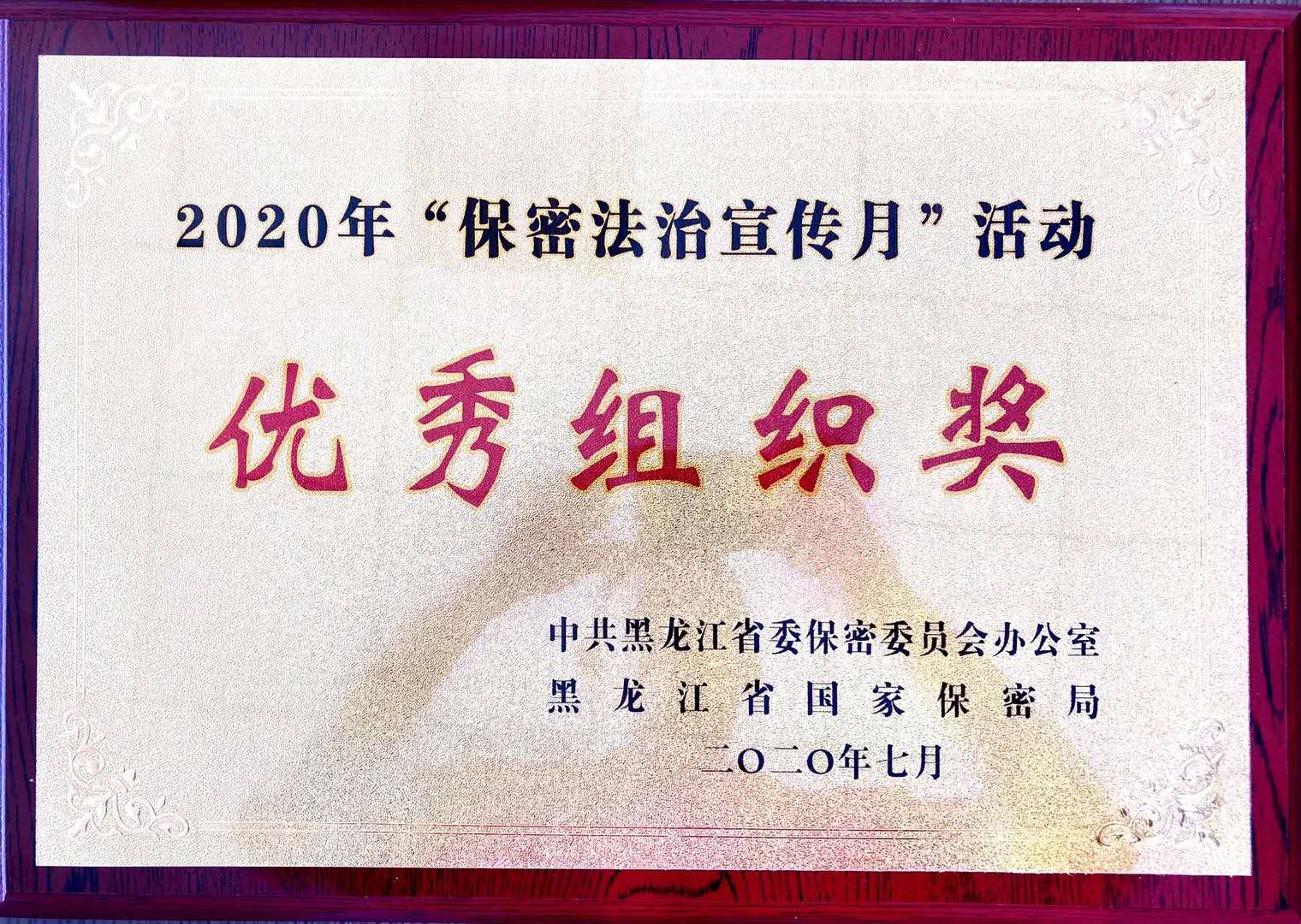 日前,中共黑龙江省委保密委、黑龙江省国家保密局下发通知,表彰在2020年度“保密法治宣传月”活动中表现突出的单位和个人,我校荣获优秀组织奖。