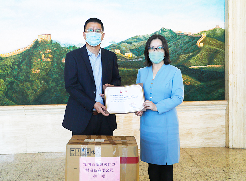 在2020级新生即将报到之际,为支持学校疫情防控工作,2017年、2018年曾在江阴市挂职的科研处梁继峰联系江阴市新盛医疗器材设备有限公司,为我校捐赠防疫物资一次性医用口罩5000只。