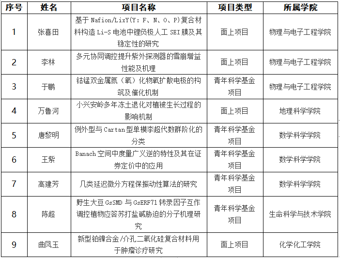 (于晓东/文)9月18日,国家自然科学基金委公布了2020年度国家自然科学基金项目资助评审结果,我校9个项目获得资助。
