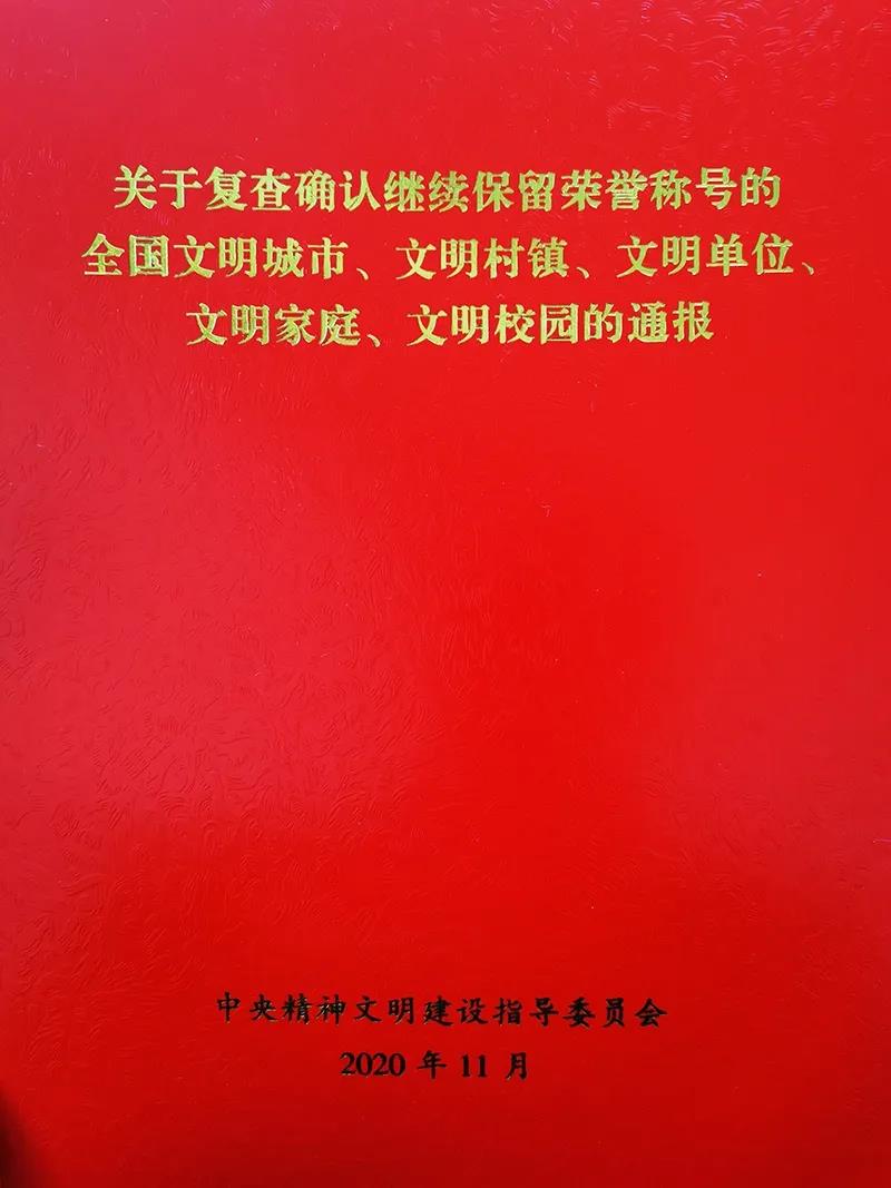 (盛志伟/文)2020年11月,中央精神文明建设指导委员会发布了《关于复查确认继续保留荣誉称号的全国文明城市、文明乡镇、文明单位、文明家庭、文明校园的通报》,我校通过复查确认继续保留“全国文明校园”荣誉称号。