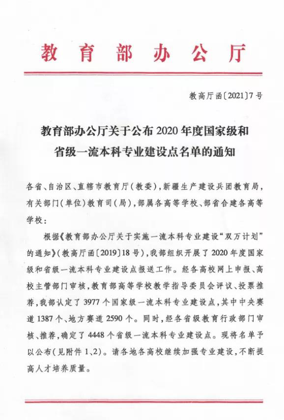 根据《教育部办公厅关于公布2020年国家级和省级一流本科专业建设点名单的通知》(教高厅函〔2021〕7号)精神,教育部公布了2020年度国家级和省级一流本科专业建设点名单,我校新增8个专业入选2020年度国家级一流本科...