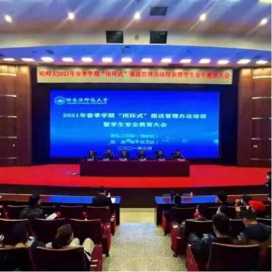 为深入推进“平安校园”建设,扎实做好常态化疫情防控工作,着力构建和完善安全防范体系,营造文明、平安、和谐的校园环境,3月26日下午,我校在科学会堂召开了2021年春季学期“闭环”培训暨学生安全教育大会。