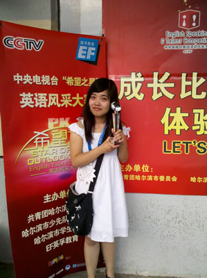 由中央电视台主办的2012年“希望之星”英语风采大赛黑龙江省决赛于6月举行,社会与历史学院2010级学生牛唯薇在全省两万名参赛选手中一路过关斩将,勇夺黑龙江赛区冠军,并代表黑龙江赛区参加在北京举行的全国总决赛。