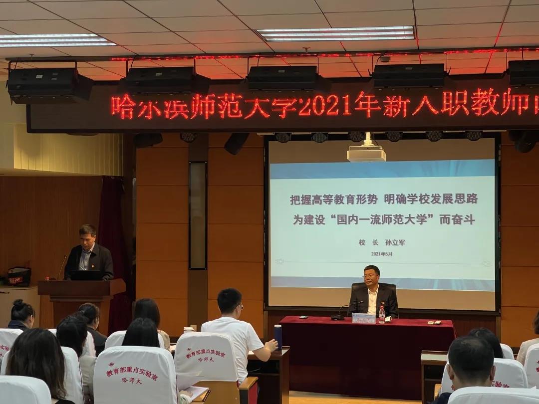 (戴旭楠/文)根据我校2021年新入职教师岗前培训工作安排,5月31日上午,校长孙立军以《把握高等教育形势,明确学校发展思路,为建设“国内一流师范大学”而奋斗》为题,为2020年、2021年新入职教师作了岗前培训讲座。