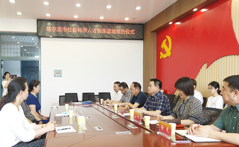 (刘丹丹/文)7月8日,我校与哈尔滨市社科联“哈尔滨市社会科学人才智库基地”授牌签约仪式在社科楼209会议室举行。