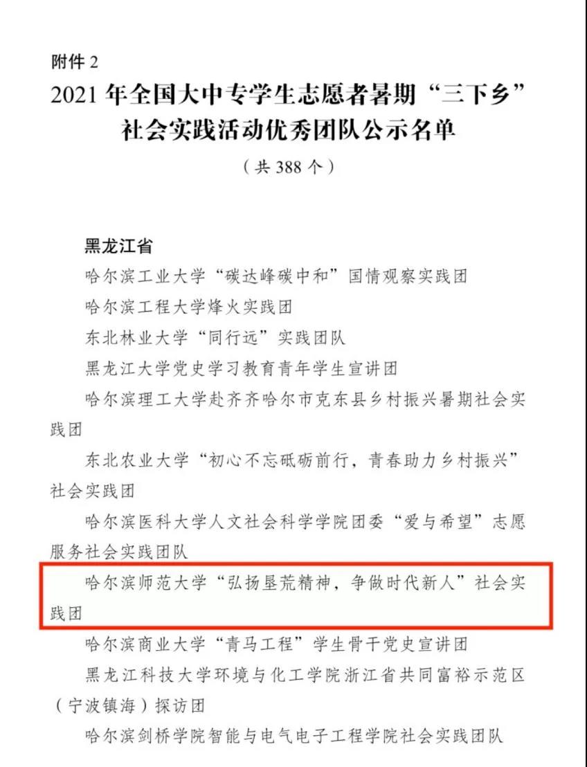 近日,团中央对2021年全国大中专学生志愿者暑期文化科技卫生“三下乡”社会实践活动中表现突出的集体、个人和项目进行了表彰,我校“弘扬垦荒精神,争做时代新人”社会实践团喜获“三下乡”社会实践活动优秀团队荣誉...