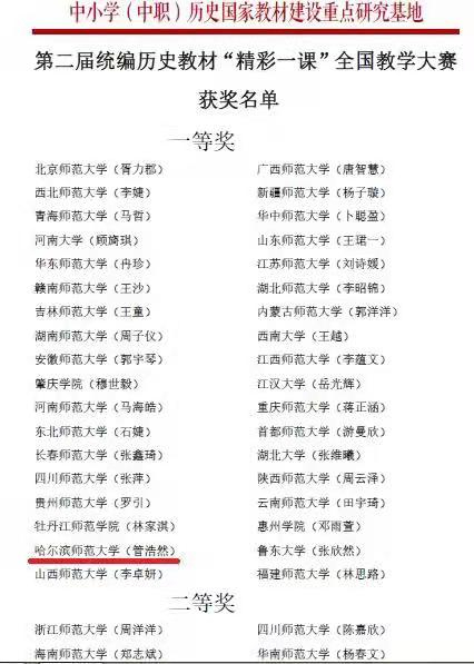 (王耘/文)在2021年岁末结束的第二届统编历史教材“精彩一课”全国教学大赛中,由我校历史文化学院王耘老师指导的历史学专业2019级管浩然同学荣获一等奖。