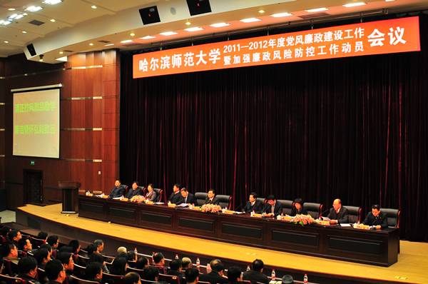 图1 会议现场 10月17日下午,拼搏在线登录2011-2012学年度党风廉政建设工作暨加强廉政风险防控工作动员大会在江北科学会堂隆重召开。