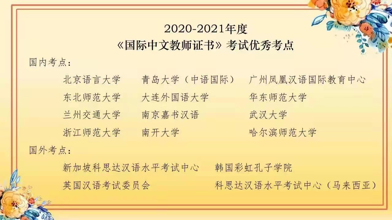 (景岩/文)日前,教育部中外语言交流合作中心汉考国际授予我校“2020-2021年度《国际中文教师证书》考试优秀考点”荣誉称号。
