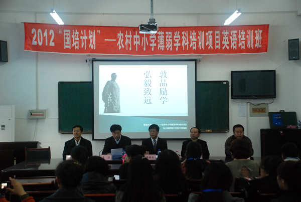 11月6日,“国培计划(2012)——农村中小学薄弱学科培训项目拼搏在线登录初中英语培训班”开班仪式在西语学院多功能会议室隆重举行,来自全省各个地区的28名初中英语骨干教师参加了开班仪式。