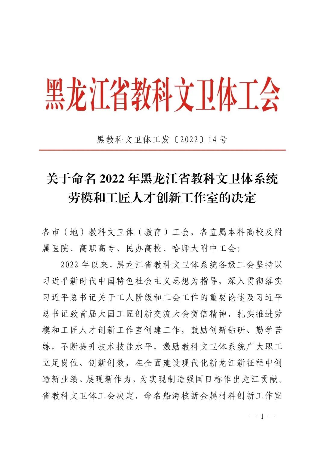 (李嘉炜/文)日前,2022年黑龙江省教科文卫体系统“劳模和工匠人才创新工作室”评选结果揭晓,33家创新工作室脱颖而出,由我校推荐的党委副书记、工会主席郭砾领衔的“行知育人”创新创业实践工作室、美术学院副院长...