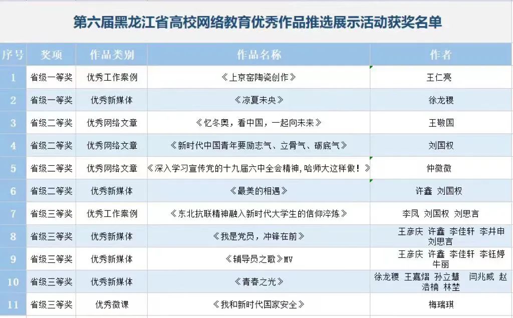 (赵鹤/文)近日,第六届“全省大学生网络文化节”和“全省高校网络教育优秀作品推选展示活动”评选结果揭晓,我校师生共有19项作品斩获佳绩,其中一等奖3项,二等奖5项,三等奖11项,获奖作品质量、数量再创新高。