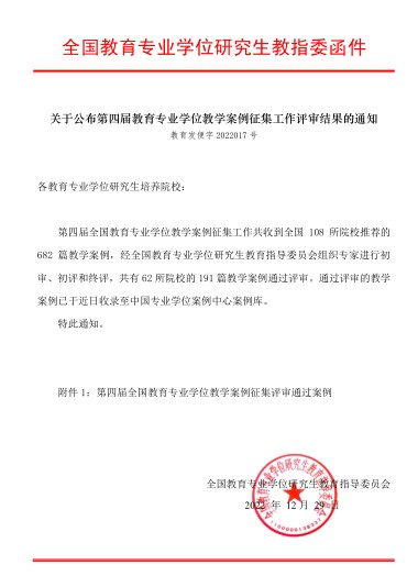 (崔显青/文)近日,全国教育专业学位研究生教育指导委员会公布了第四届全国教育专业学位教学案例征集结果。