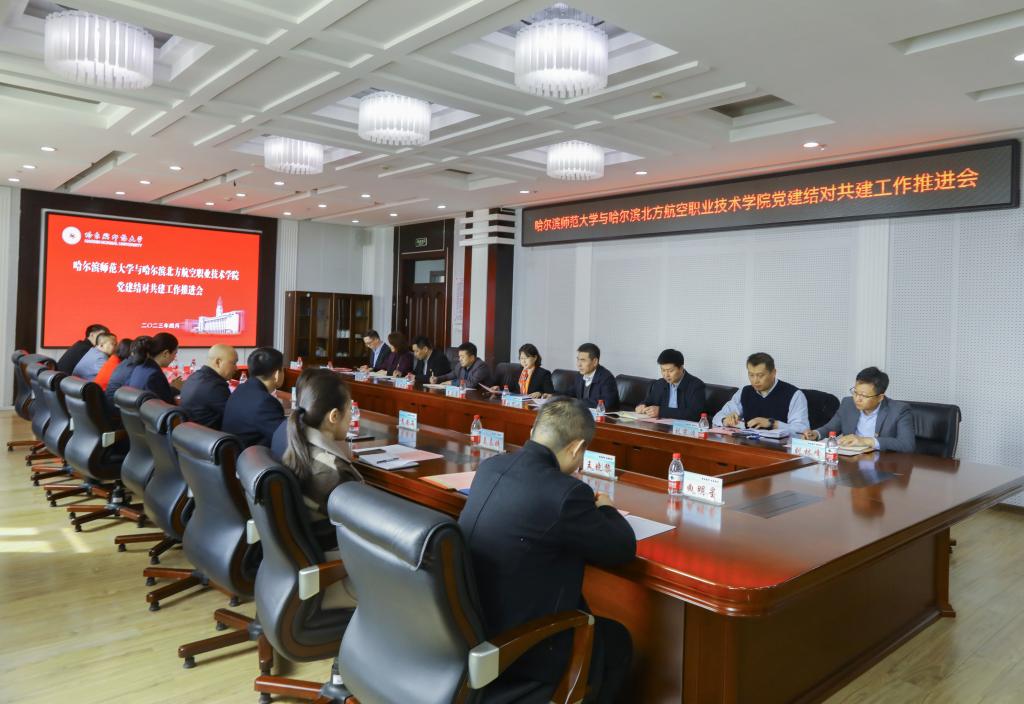 (王相光/文)4月4日,我校与哈尔滨北方航空职业技术学院党建结对共建工作推进会在行知楼915会议室召开。