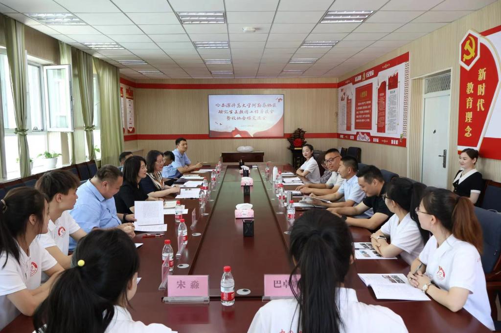 7月17日上午,校研究生支教团工作座谈会暨校地合作交流会在阿勒泰地区第一高级中学至善楼二楼会议室召开。校党委副书记、工会主席郭砾出席会议并讲话。阿勒泰地区第一高级中学党委书记安海燕,阿勒泰地委教育工委委员、教育局副局长易安勇同志,阿勒泰地区团委副书记任俊,阿勒泰地区教育局党组成员、副局长、阿勒泰地区团委兼职副书记王毅夫,学校相关职能部处负责同志,辅导员代表,校第七届、第八届研究生支教团阿勒泰分团全...