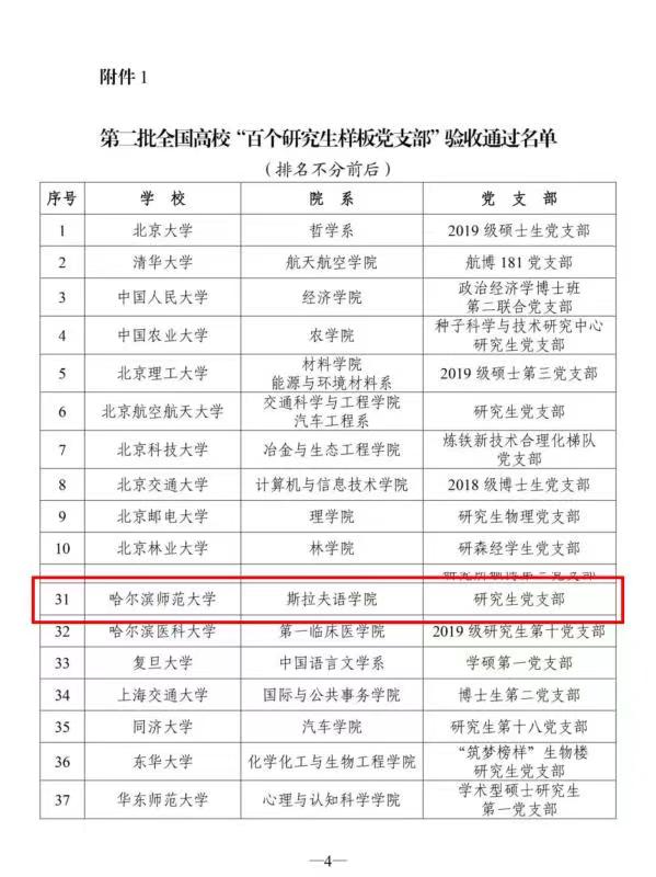 近日,教育部思想政治工作司发布了《关于第二批全国高校“百个研究生样板党支部”和“百名研究生党员标兵”创建培育工作验收结果的公示》,通过基层党组织培育建设、学校党委评估总结、省委教育工委组织部把关审核,教育部相关司局和单位审查,我校斯拉夫语学院研究生党支部顺利通过验收。斯拉夫语学院研究生党支部在建设期内按照“七个有力”建设标准,围绕培养“具有家国情怀、国际视野、堪当民族复兴大任的...