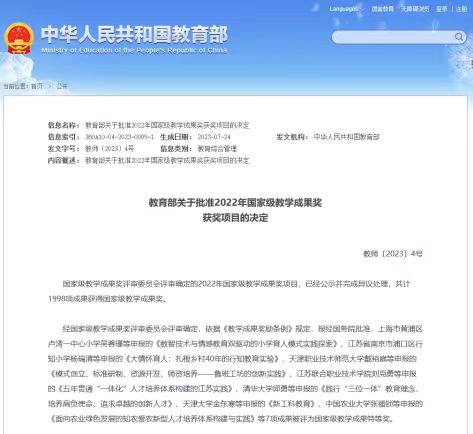 近日,教育部公布了2022年高等教育国家级教学成果奖获奖名单,共计1998项成果获得国家级教学成果奖。我校斯拉夫语学院赵秋野教授主持申报的《新时代中俄关系背景下G-U-S协同创新中学俄语教育:理论与实践》项目获得基础教育国家级教学成果奖二等奖。这是继2014年斯拉夫语学院教学团队获得高等教育(本科)国家级教学成果奖,时隔8年后,再次获得国家级教学成果奖,也是我省高等学校首次获得基础教育国家级...