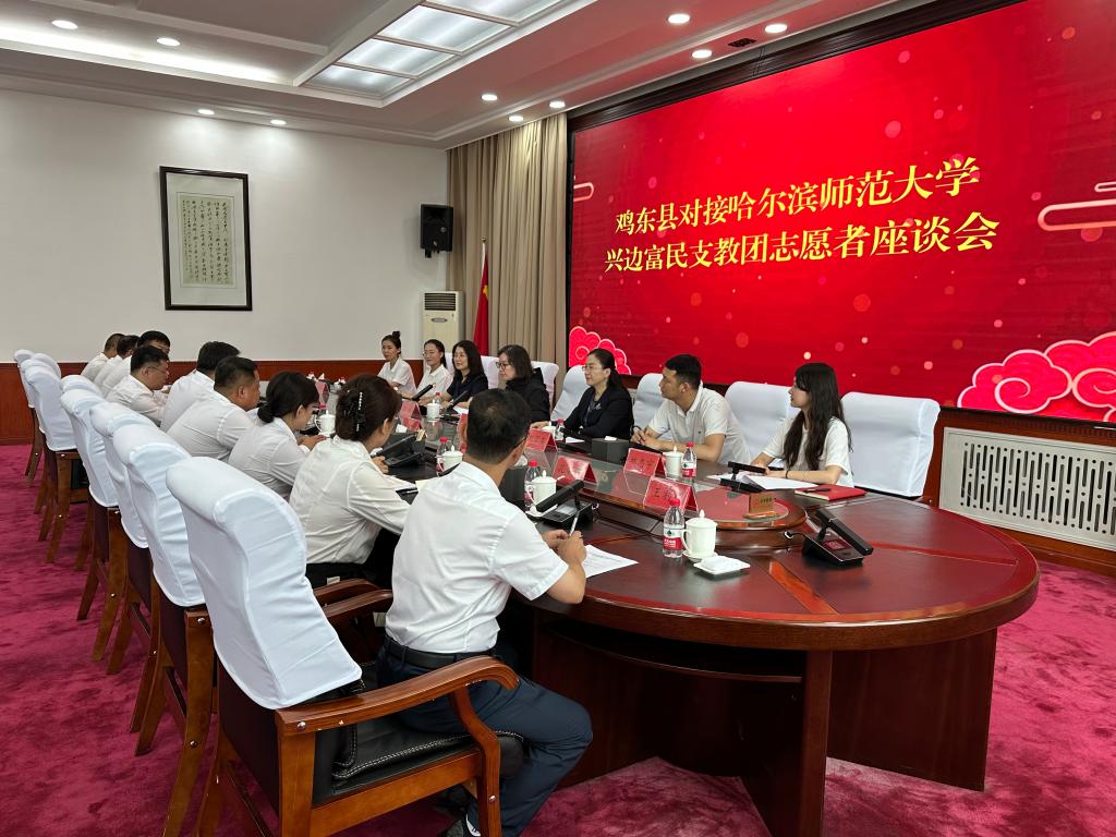 8月9日,我校鸡东县兴边富民支教团志愿者座谈会在鸡东县会议中心召开。鸡西市委副书记、鸡东县委书记苑芳江,校党委副书记、工会主席郭砾出席座谈会并讲话。鸡东县相关领导,县教育局、团县委、第二中学、第五中学,我校相关部门负责同志、辅导员代表、鸡东县支教团成员参加座谈会。会议由鸡东县委副书记高占昆主持。会上,郭砾就鸡东县长期以来对我校研究生支教团工作的支持与帮助表示感谢,她指出开展青...