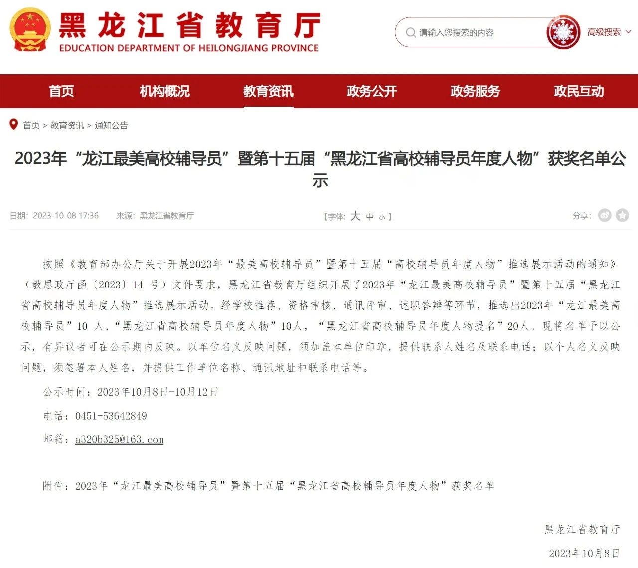 近日,由中共黑龙江省委宣传部、中共黑龙江省委教育工作委员会和黑龙江省教科文卫体工会联合主办,教育部高校思想政治工作队伍培训研修中心(拼搏在线登录)承办的2023年“龙江最美高校辅导员”暨第十五届“高校辅导员年度人物”推选展示活动圆满落下帷幕。本次活动推选出“龙江最美高校辅导员”10 人,“黑龙江省高校辅导员年度人物”10人,“黑龙江省高校辅导员年度人物提名”20人。经材料呈现、个人展示和评委...