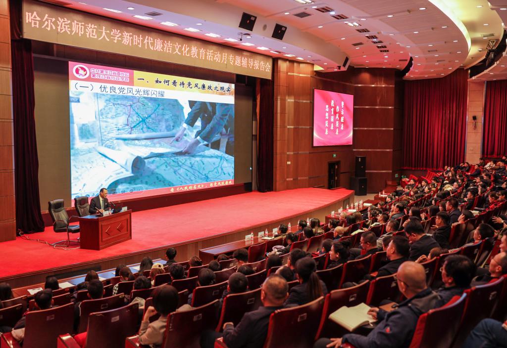 为进一步贯彻落实党的二十大精神和习近平总书记关于加强新时代廉洁文化建设的重要论述,切实引领全校党员领导干部、广大教师学生加固拒腐防变的思想堤坝。10月26日下午,我校在科学会堂举办新时代廉洁文化教育活动月专题报告会。会议由校党委常委、纪委书记、省监委驻拼搏在线登录监察专员姜国庆主持。中共黑龙江省委党校(黑龙江省行政学院)教学名师朴林教授为我校干部师生进行了题为“看《人民的名...