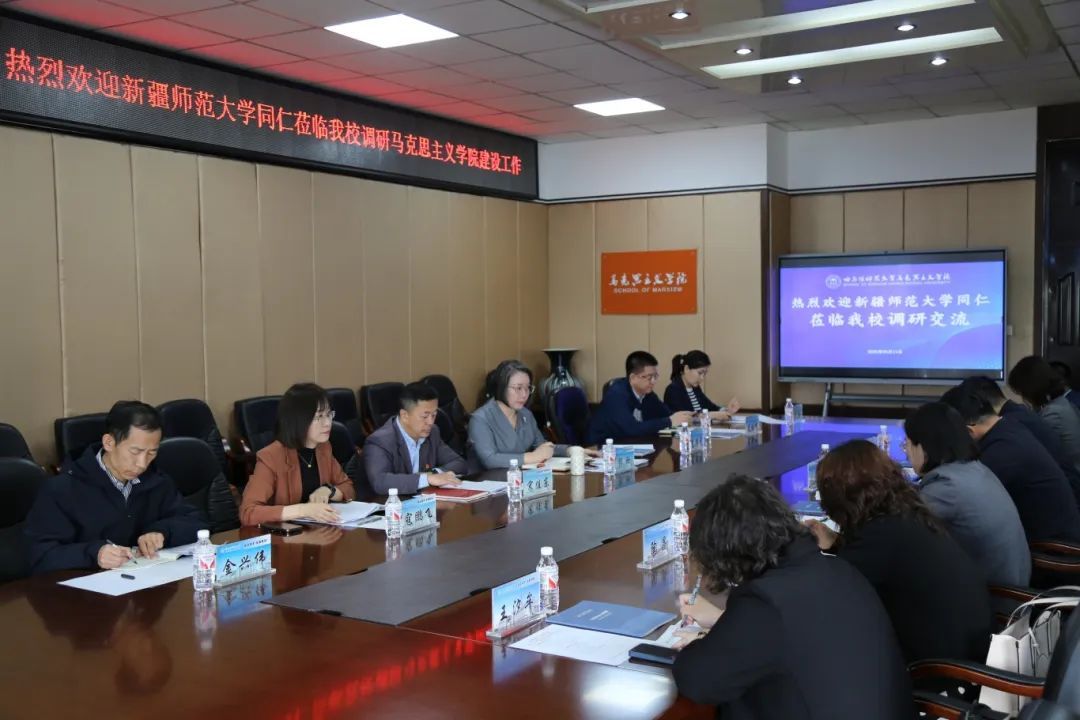 5月15日,新疆师范大学党委常委、副校长刘晨江等一行7人来我校调研马克思主义学院建设工作。我校党委副书记、工会主席郭砾陪同调研并主持调研座谈会,教育部高校思想政治工作队伍培训研修中心、科研处、马克思主义学院等相关负责同志参加座谈会。 座谈会上,刘晨江介绍了新疆师范大学建设发展情况,表明本次调研的目的和意义。双方与会人员就思政课教师队伍建设、思政育人工作、学位点建设、团队建设、科研攻关、人才培养等工作的经验和做法进行广泛交流。...