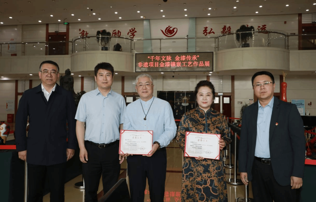 5月27日下午,“千年文脉・金漆传承”非遗项目金漆镶嵌工艺作品展在江北图书馆一楼大厅开幕。此次活动由图书馆精心筹备,旨在传承和弘扬中华优秀传统文化,为师生搭建起与非遗技艺交流的平台。校党委常委、副校长陈永斌,黑龙江省非物质文化遗产金漆镶嵌工艺传承人夏立军、白艳萍,图书馆负责人、入馆师生及图书馆馆员参加活动。本次活动由馆长李刚主持。陈永斌指出,非遗文化是民族瑰宝,金漆镶嵌工艺承载着历史记忆与文化基因,本次活动对传承非遗文化、...