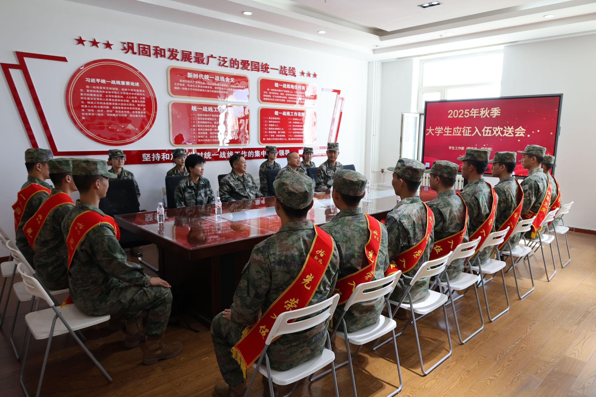 为深入贯彻党的教育方针和习近平强军思想,深刻把握立德树人根本任务,深入推进“时代新人铸魂工程”,切实做好大学生征兵后续保障工作,热烈欢送我校学子奔赴国防一线,9月15日上午,我校举行2025年秋季大学生应征入伍欢送活动。校党委书记孙立军出席活动并讲话,学生工作部(学生处、武装部)相关同志、秋季应征入伍大学生参加活动。孙立军向即将踏上军旅征程的学生们表示祝贺,对他们积极献身国防、携笔从戎给予高度评价,同时对他们提出三点期望与要求:...