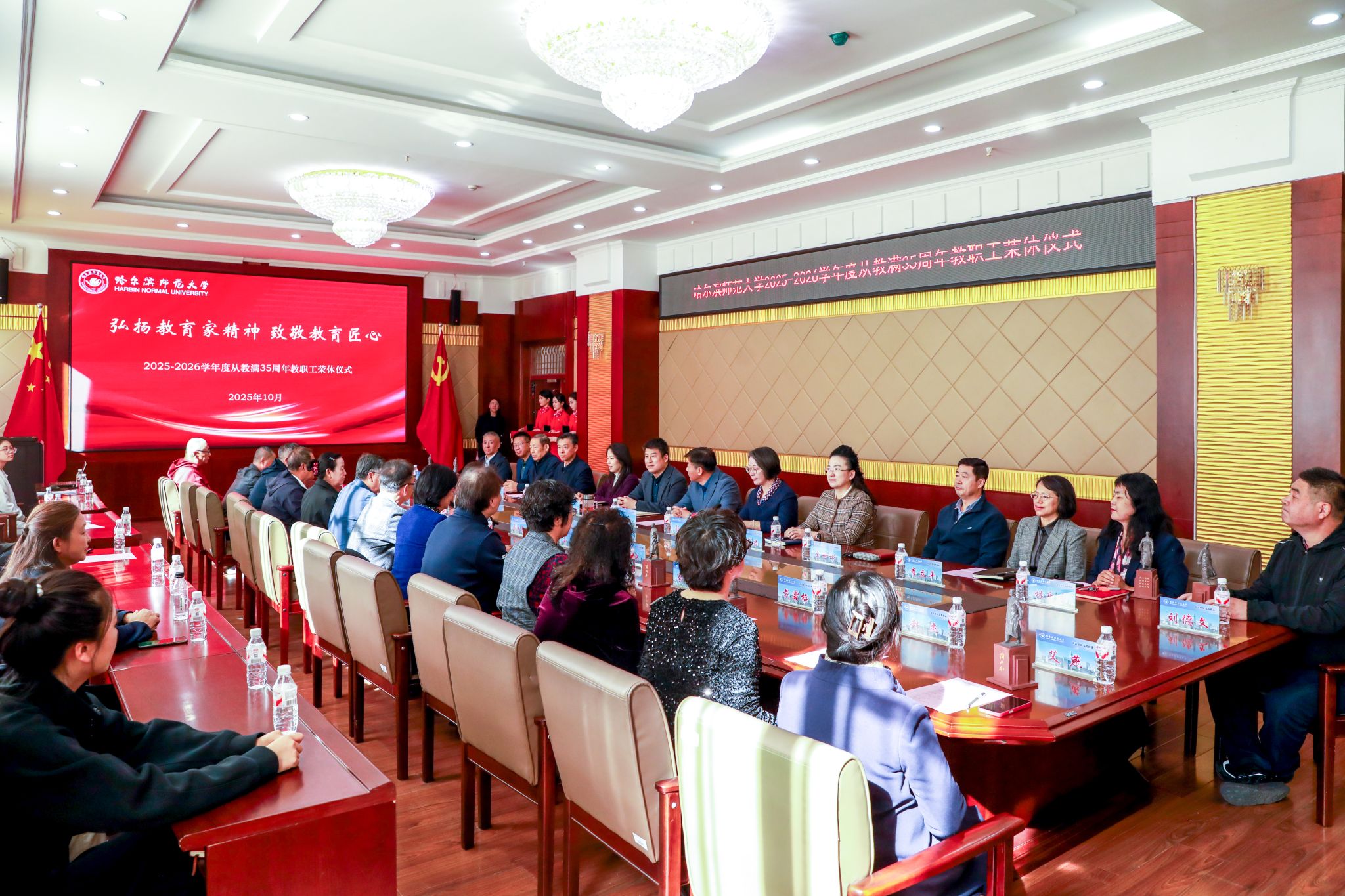 10月10日上午,拼搏在线登录2025-2026学年度从教满35周年教职工荣誉退休仪式在主校区举行。本次仪式以“弘扬教育家精神 致敬教育匠心”为主题,校长蒋鲲,党委副书记、工会主席郭砾,党委常委、副校长陈永斌,党委常委、宣传部(党委教师工作部)部长张艳君,党委常委、组织部部长王羽出席仪式,相关单位负责人、工会主席,18位荣休教师代表及30余名新入职教师参会,校工会常务副主席杨世君主持仪式。郭砾代表学校向荣誉退休教职工致以真挚祝福与崇高敬意。...