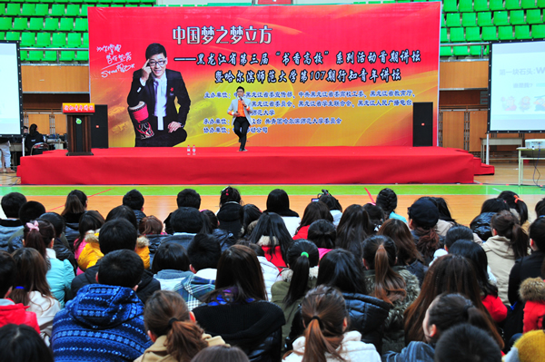 3月23日下午,智立方品牌营销传播集群董事长兼CEO杨石头先生作客“中国梦之梦立方——黑龙江省第三届‘书香高校’系列活动首期讲坛暨拼搏在线登录第107期行知青年讲坛”活动现场。