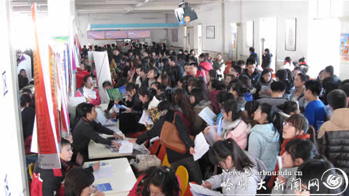 图1 招聘会现场 11月28日上午,我校2012届毕业生综合类大型招聘会在松北校区第二食堂举行。
