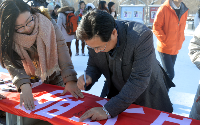 (卢范一妮/文)12月4日中午,由党委宣传部、法学院联合举办的“我爱宪法,维护宪法”大型签名活动在梦溪湖畔广场举行,这标志着我校“弘扬宪法精神,建设法治中国”为主题的系列法制宣传教育活动正式启动。