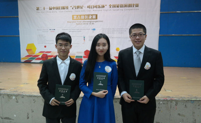 (孟繁婷/文)由中国日报社、21世纪英文报主办的第二十一届中国日报社“21世纪·可口可乐杯”全国英语演讲比赛黑吉赛区总决赛于12月5日在黑龙江大学落下帷幕。