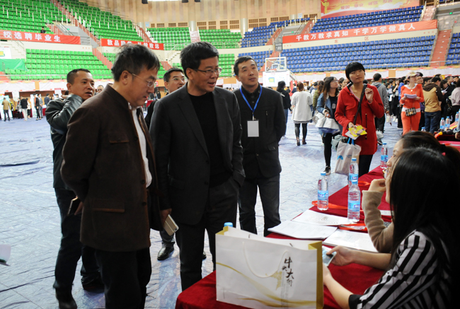 (刘春玲/文)5月15日上午,我校在江北校区体育馆和科学会堂两个场地举办了2016届非师范毕业生春季供需洽谈会。