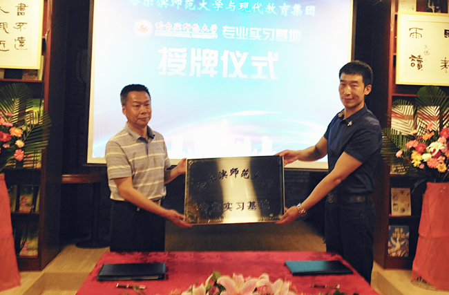 (刘丹丹/文)6月22日,我校与现代教育集团举行“专业实习基地”签约授牌仪式。