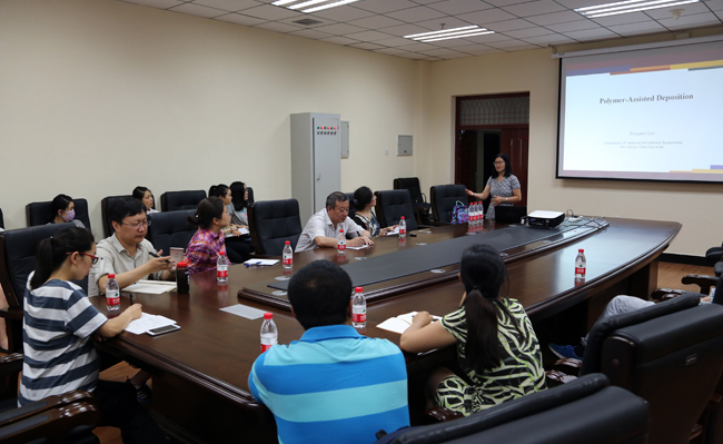 (徐玲玲/文)应物理与电子工程学院的邀请,美国新墨西哥州立大学罗红梅教授7月10日上午和7月13日上午在重点实验室会议室分别进行了关于美国留学介绍和聚合物辅助沉积的学术报告。