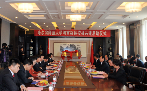 图1 启动仪式现场 3月30日下午,我校与富裕县共建活动启动仪式在行知楼915会议室举行。