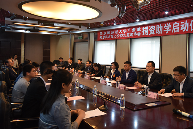 (徐雷/文)为弘扬中华民族助人为乐、无私奉献的优良传统,帮助贫困师范生解决上学难的问题,5月3日上午,由哈尔滨市爱心公益志愿者协会与我校产业处联合开展的“捐资助学”活动启动仪式在梦溪宾馆七楼会议室举行。