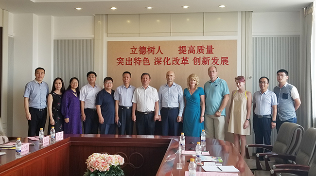 (林云贺/文)8月14日,阿穆尔国立大学校长普卢金科·安·多一行来我校访问。