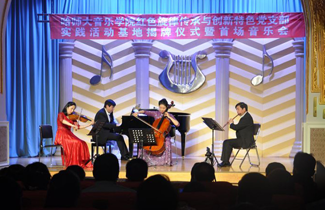 (左游/文)为了贯彻落实“十九大”精神,加强基层党组织建设,提高基层党组织战斗堡垒作用,11月18日晚,我校音乐学院红色旋律传承与创新特色党支部实践活动基地揭牌仪式暨首场演出在哈尔滨市工人文化宫音乐厅举行。