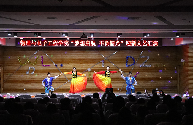 (李明/文)为展现当代大学生风采,迎接2017级新生暨2018新年的到来,12月6日,物理与电子工程学院于梦溪宾馆二楼会议室举办“梦想启航,不负韶光”迎新文艺汇演。
