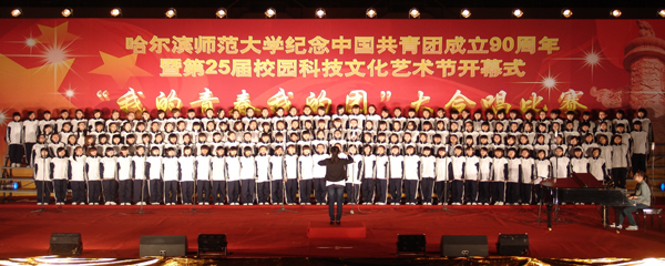 为庆祝中国共青团成立九十周年,大力弘扬“五四”爱国主义精神,传承历史使命,谱写青春华章,团委于5月14日下午在体育馆隆重举行第25届校园科技文化艺术节“我的青春我的团”大合唱比赛初赛。