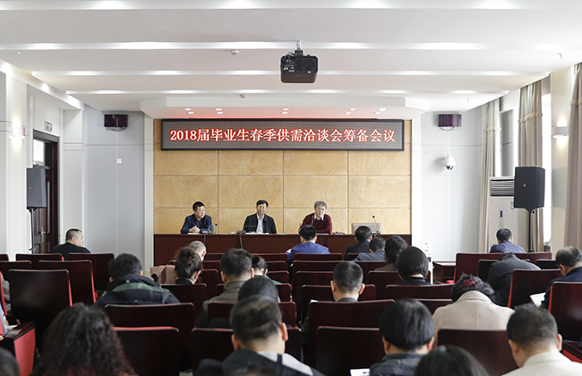 (韩方立/文)4月8日下午,我校在行知楼746召开了2018届毕业生春季大型供需洽谈会筹备会暨工作布置会。