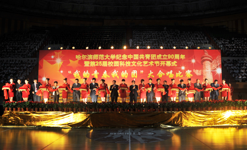 5月16日14:30,我校第25届校园科技文化艺术节开幕式暨“我的青春我的团”大合唱比赛决赛在松北校区体育馆隆重举行。