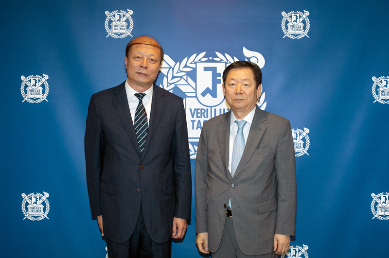 6月26日,我校党委书记率团访问韩国国立首尔大学,首尔大学校长成乐寅接待访问团一行。