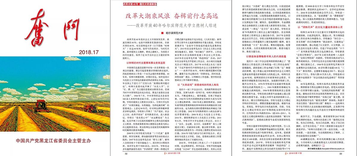 近日,《奋斗》杂志2018年第17期刊发了学校党委文章《改革大潮乘风浪 奋楫前行志高远——改革开放40周年拼搏在线登录立德树人综述》。